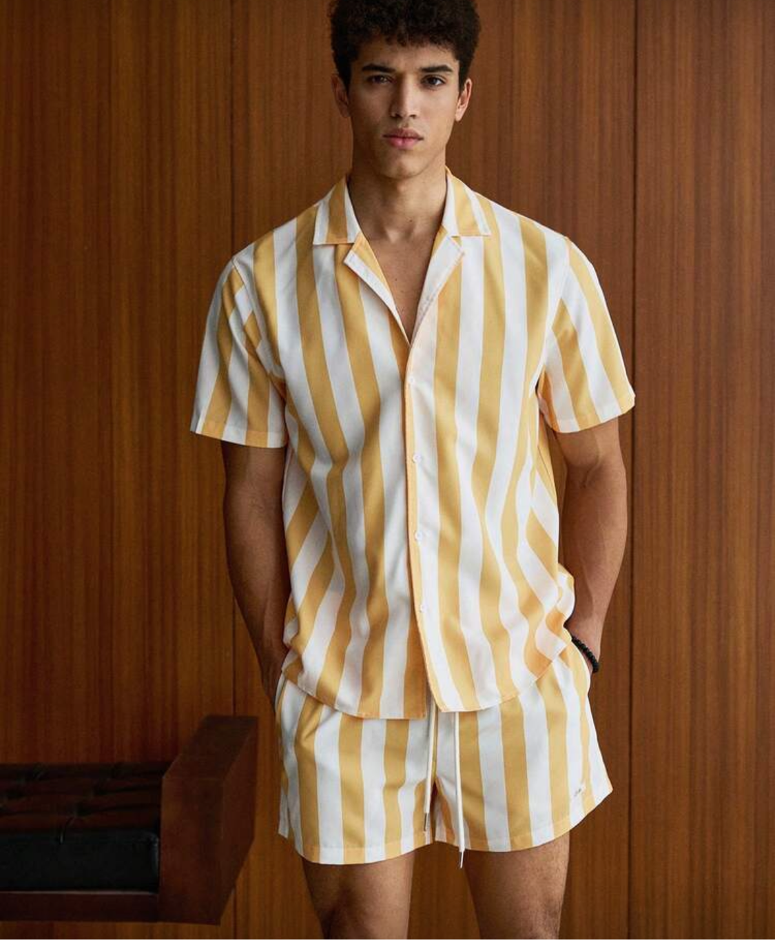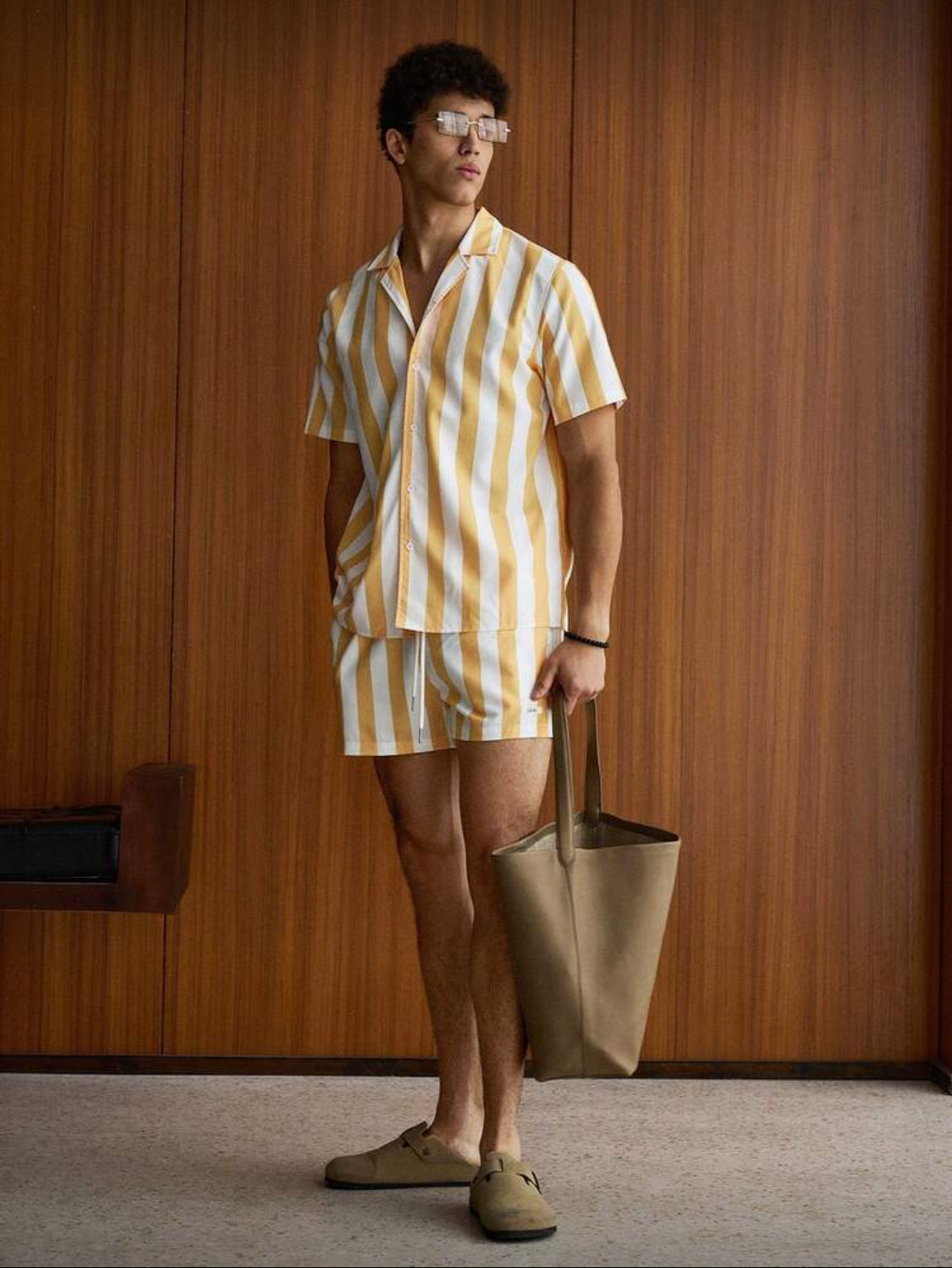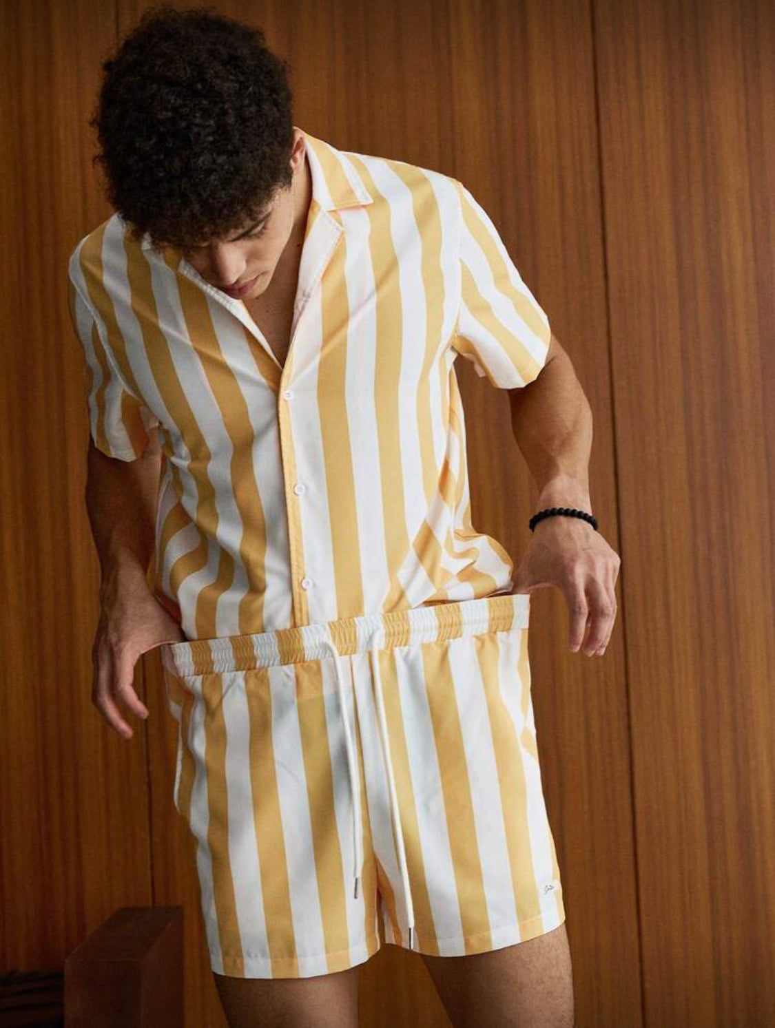 Manfinity VCAY Conjunto de camisa con cuello de solapa, botones delanteros y estampado floral de rayas para hombres