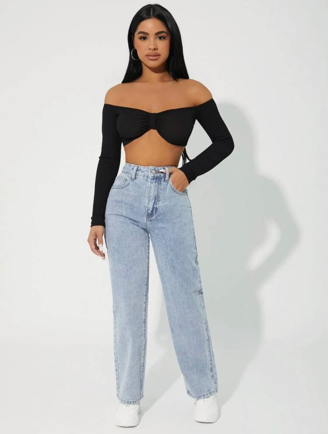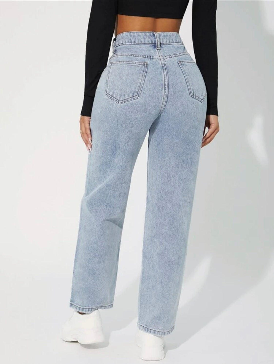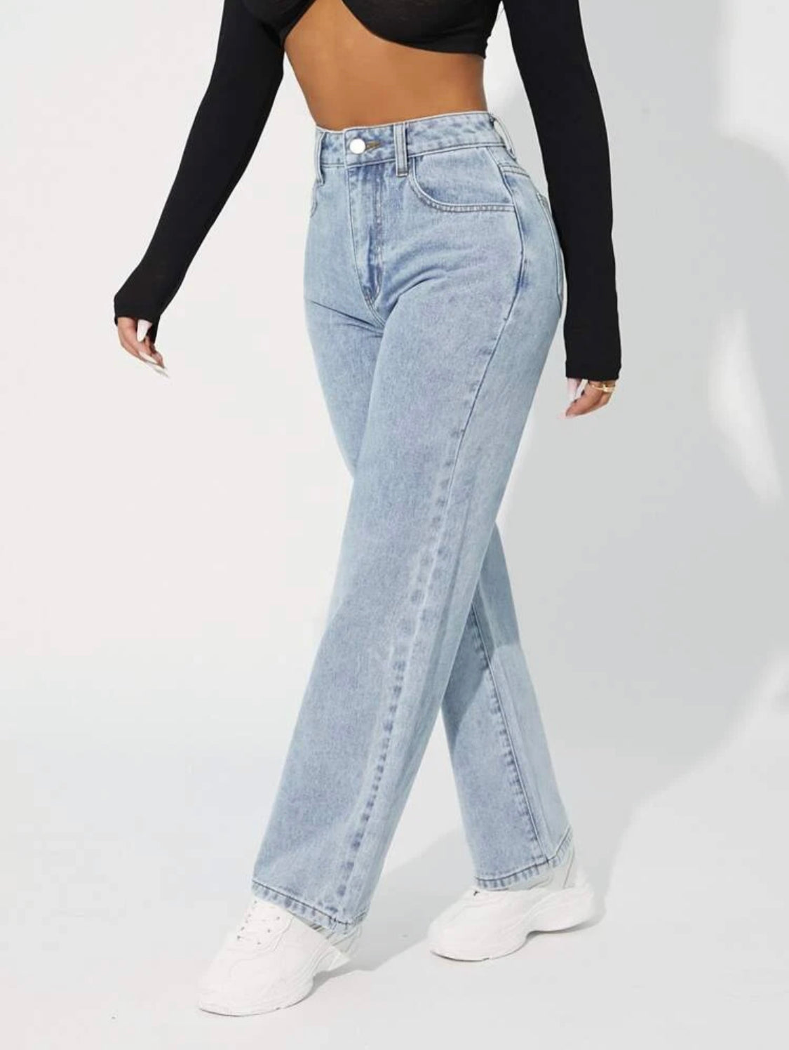 SHEIN PETITE Jeans de pierna recta de talle alto